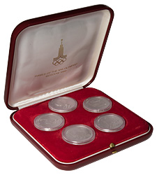 • Набор платиновой олимпиады-80 5 монетт в слабах NGC pf 69