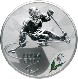 Серебряная монета 3 рубля "Сочи 2014" - "Следж-хоккей на льду" СПМД, 31,1г.